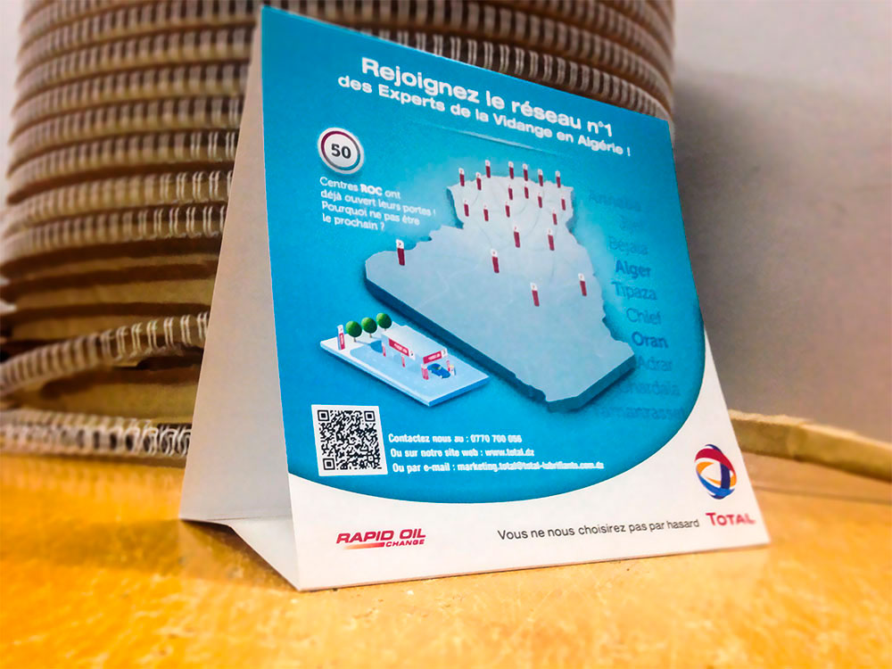 Notre entreprise créée en 2012 à Alger, spécialisé dans l'impression numérique ne cesse de se développer chaque jour un peu plus, et ce grace à la confiance et au crédit que nos clients nous ont accordé mais aussi et surtout grace au fantastique travail de nos équipes commerciales et techniques qui conjuguent leur talents et leur savoir-faire afin d’atteindre leur objectif commun : la satisfaction inconditionnelle du client. Malgré son très jeune age, notre entreprise se distingue de ses concurrents par la qualité de ses prestations ainsi que par l’attention toute particulière accordée à ses clients, qui peut se traduire parfois par l’extension des horaires de travail jusqu’à tard le soir ou même le week-end. Nous disposons pour cela de materiel professionnel d’impression et de finition qui pour certaines machines est unique en Algérie, nous disposons aussi et surtout d’une équipe qui cumule des dizaines d’années d’expériences dans le domaine de l’impression et de la communication. La meilleure façon de vous rendre compte de tous cela reste encore de venir nous rendre visite … Alors, soyez les bienvenues !